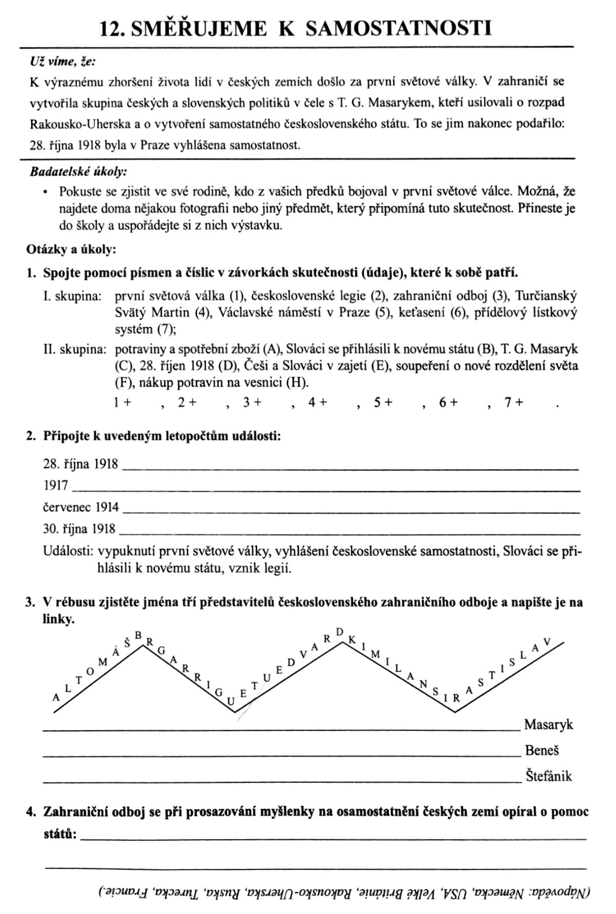 Úkol: - přečti si kapitolu Vznik Československé republiky v učebnici na straně 38.